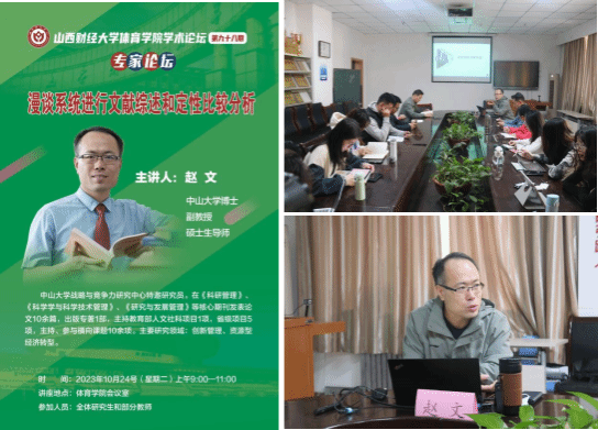 10月24日上午,beats365学术论坛第九十八期暨专家论坛在beats365会议室举办,中山大学博士、管理科学与工程学院硕士生导师赵文副教授受邀作题为“漫谈系统进行文献综述和定性比较分析”学术讲座。beats365副经理高进、学院骨干教师、全体研究生参加讲座,讲座由beats365学研办主任王雁主持。