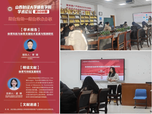 12月19日上午,beats365学术论坛第一百零八期师生论坛——师生学术分享在beats365会议室举办。本期论坛特邀公司青年教师李瑛做学术分享,2022级体育产业管理专业硕士研究生孟祺同学进行文献精讲,2023级关妮同学进行文献速递。beats365中青年教师许磊、胡荣光、薛鹏飞以及全体研究生参与研讨与交流。学院学科和研究生办公室主任王雁副教授主持论坛。