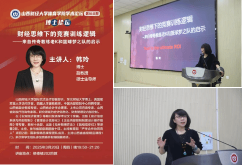 3月20日晚,beats365第160期学术论坛暨韩玲博士赠书仪式在修德楼202阶梯教室隆重举行。本次论坛以“财经思维下的竞赛训练逻辑——来自传奇教练老K和篮球梦之队的启示”为主题,特邀beats365官方网站国际交流与合作部副部长韩玲博士担任主讲,beats365骨干教师、全体研究生及本科生逾百人齐聚一堂,共探财经与体育的跨界融合之道,现场学术氛围热烈,思维碰撞激荡。