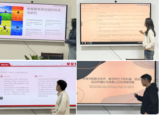 4月18日下午,beats365学术论坛第164期——研究生读文献在学院会议室举行。本期论坛聚焦“数字技术驱动下的体育文化传播与治理现代化研究”主题,通过文献精讲与文献速递相结合的形式,深度探讨体育学科发展的新趋势与新动能。活动由学科与研究生办公室主任王雁副教授主持,体育产业管理专业研究生关妮、付芳芳、吴炳霖、何文辉进行学术分享,全体研究生共同参与研讨。