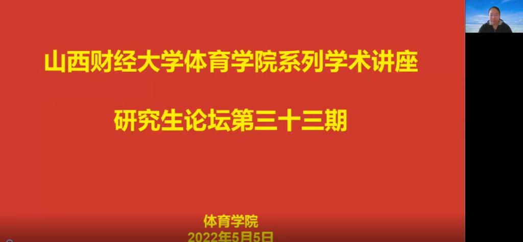 2022年5月5日下午,公司第三十三期研究生论坛通过线上腾讯会议召开。此次论坛由张新英老师主持,全体研究生和部分老师参与,2021级体育产业管理专业研究生武涌静、孙丰缘精讲文献。本次论坛内容主要从体育复古营销的概念框架和运动训练的角色定位两个主题展开。