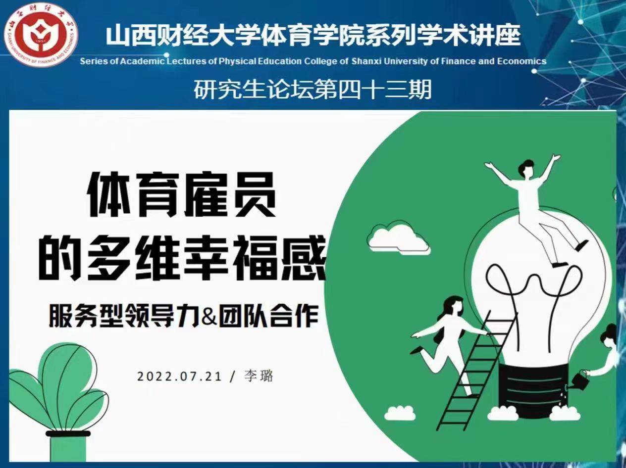 李璐同学所分享的文章主题为“体育雇员的多维幸福感”,主讲文章为来自澳大利亚迪肯大学STEVESWANSON博士的LEADING FOR MULTIDIMENSIONAL SPORT EMPLOYEE WELL-BEING:THE ROLE OF SERVANT LEADERSHIP AND TEAMWORK,来自SPORT MANAGEMENT REVIEW期刊。文章运用结构方程模型讨论了服务型领导风格对体育雇员主观幸福感的影响。