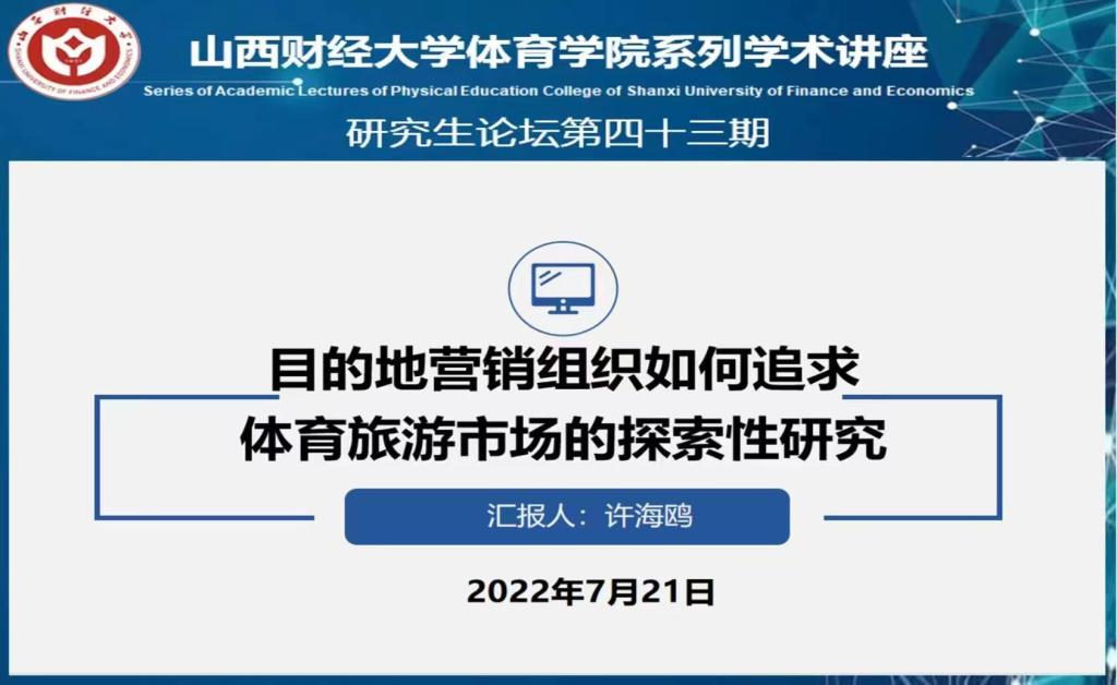 许海鸥同学所分享的文章主题为“目的地营销组织如何追求体育旅游市场”,主讲文章为美国阿巴拉契州立大学RICHARD WPOUDER学者的AN EXPLORATORY STUDY OF HOW DESTINATION MARKETING ORGANIZATIONS PURSUE THE SPORTS TOURISM MARKET,来自JOURNAL OF DESTINATION MARKETING & MANAGEMENT期刊。文章通过对拥有丰富体育营销经验的DMO领导成员进行半结构化访谈,探索旅游目的地营销组织是如何追求旅游目的地中的体育市场。