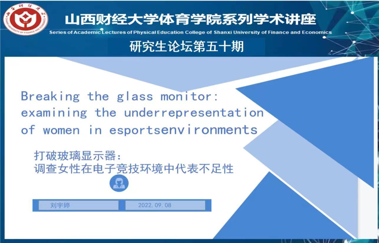 论坛第一讲由刘宇婷同学分享精读文章,主讲文章为来自纽约州立大学科特兰分校体育管理系LindseyDarvin等学者联合发表的Breakingthe Glass Monitor:Examining the Underrepresentation of Womenin Esport Environments,来自Sport Management Review期刊,文章通过定性分析探索了女性在目前电子竞技的大环境中面临的问题。
