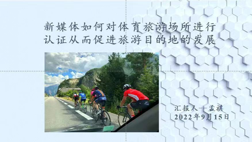 孟祺的主题为“新媒体如何对体育旅游场所进行认证从而促进旅游目的地的发展”,主讲文章由来自澳大利亚昆士兰南十字星大学商业和旅游学院Matthew Lamont & Andrew S. Ross学者联合发表的New Media and Authentication of Sport Tourism Place: Social (Re)Production of Alped’Huez as a Sacred Tour de France Site,来自Journal of Sport & Tourism期刊,文章主要讲述了通过对旅游认证概念的讨论,依靠新媒体平台将环法自行车赛圣地Alped’Huez打造成为“必须参观”的地点的热认证,从而促进该体育旅游目的地的发展。