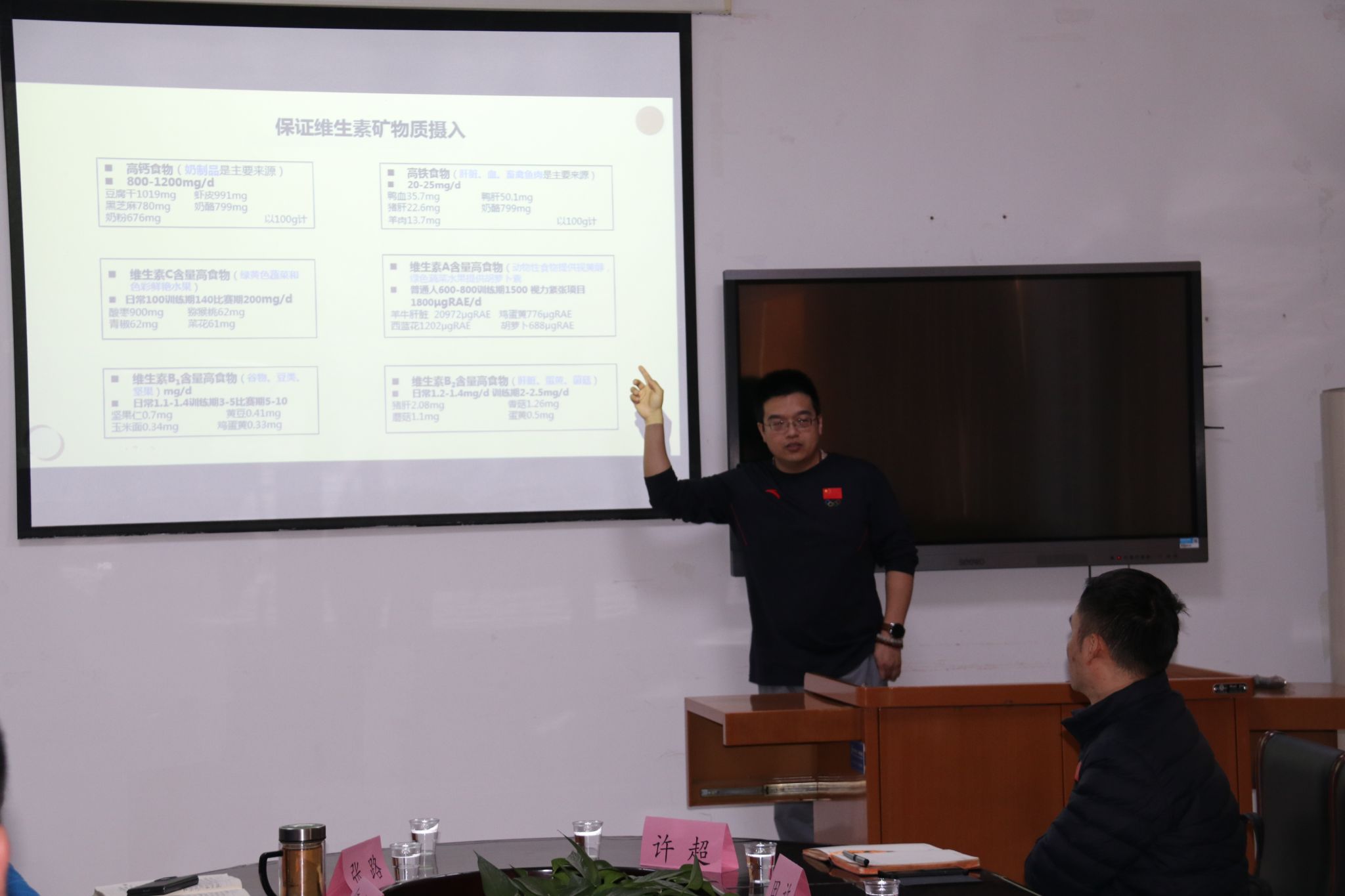 论坛分为两个阶段。第一阶段,由田许博士给大家带来精彩讲座,主题为“篮球运动员合理膳食与运动营养补充策略”。田许博士讲述了运动员如何合理膳食与营养补充的基本内容,他指出一些运动员面临着三餐比例失衡、饮食总热量摄入不足、主食摄入量较少、营养素摄入不足等营养现状,这些问题将影响身体素质、训练、比赛状态。不同项群运动员日常营养与食物的标准不同。他详细介绍了康比特公司对于运动营养的解决方案。