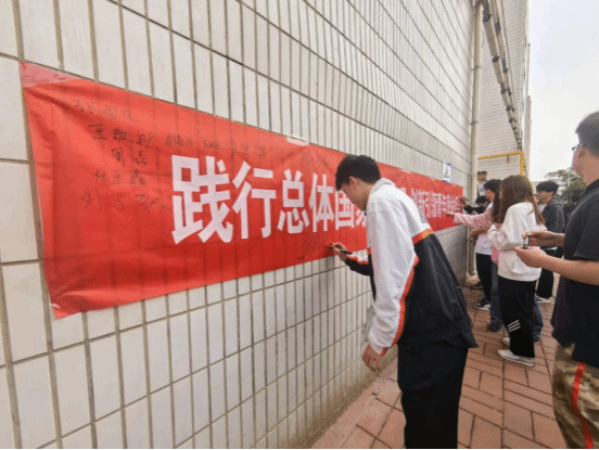 讲座结束后,参会同学在印有“践行总体国家安全观,创新引领青年使命担当”的横幅上郑重签下自己的姓名,充分表达了作为时代青年做国家利益的捍卫者、国家安全的守护人的坚定信念,一笔一画里面蕴含了他们坚决维护国家安全的决心。