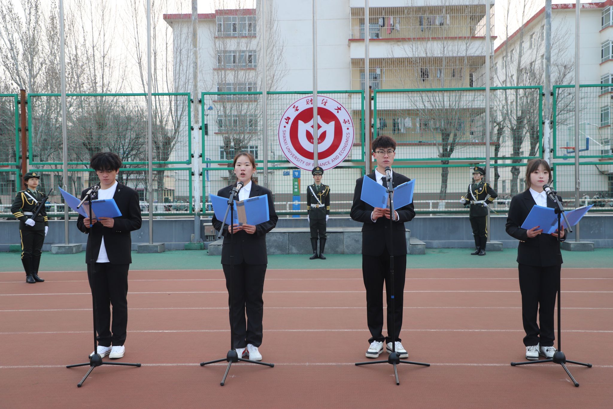 员工代表姚翟乐、覃乐妍、胡梦哲、朱梦晗以《学风筑梦,青春启航》为题进行国旗下的演讲。他们号召全院同学摒弃懈怠、勤学笃行,做到文体兼修、知行合一,以青春之名共建优良学风、共扬体育精神。