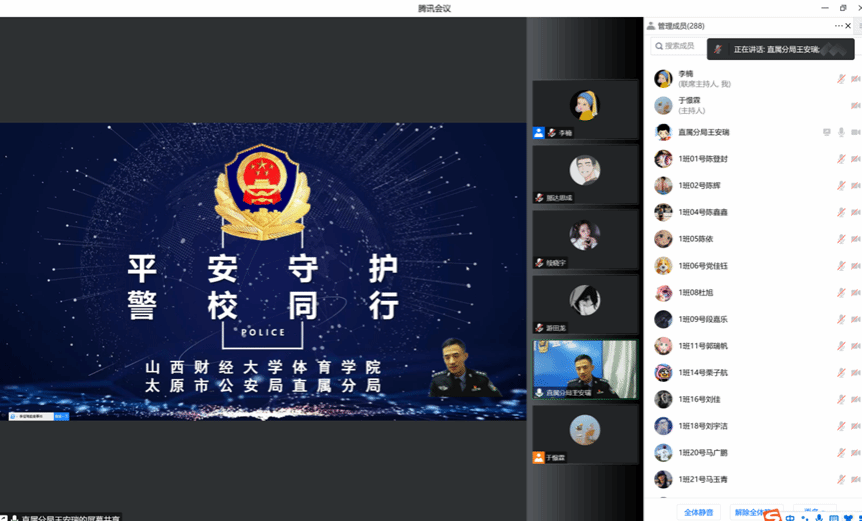 为提升老员工安全防范意识,增强自我保护能力,营造健康、和谐的校园环境,2022年11月8日下午,公司邀请太原市公安局直属分局指挥室副主任、太原市公安局反诈讲师王安瑞警官做了题为“平安守护,警校同行”的老员工安全知识教育主题讲座。公司副书记郝丽霞、全体辅导员和全体员工参加。活动由学院团委书记李楠主持。
