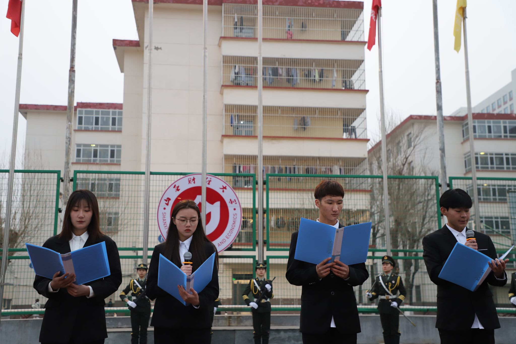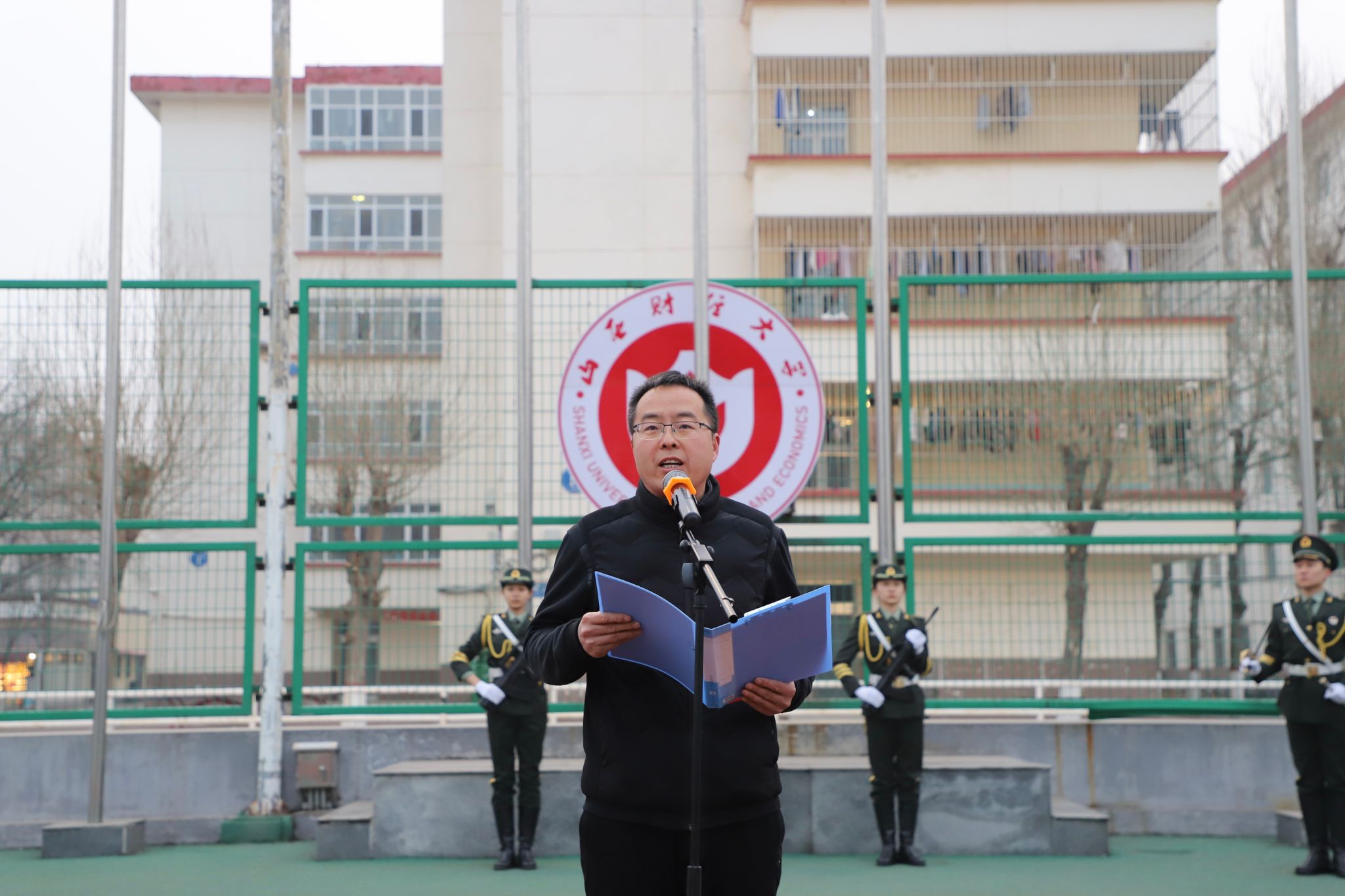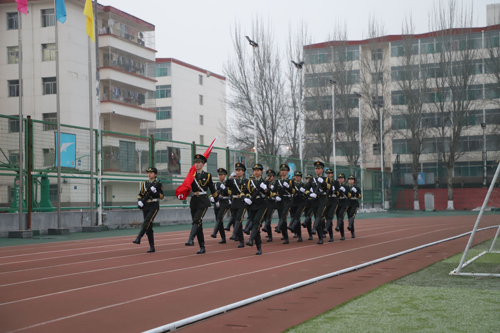 2月27日上午7时,迎着清晨的第一缕阳光,公司在坞城校区体育场举行了庄严的升国旗仪式。公司领导班子全体成员、辅导员和全体员工参加了升旗仪式。