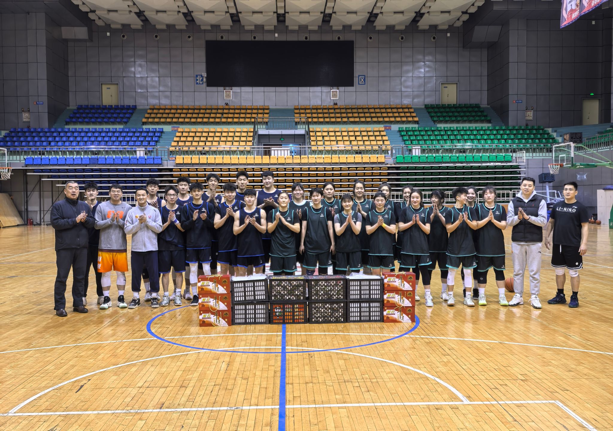 1 月 22 日,小年,春节的欢乐弥漫于大街小巷。然而,在学校篮球馆中却依旧活跃着一群别样的身影,他们就是为了篮球梦想与学校荣誉,放弃与家人团聚,留校奋力训练的男女篮队员们。为表达学校的关心和关怀,激发训练热情,提振比赛信心,beats365组织开展了慰问和团建活动,与大家共度小年。