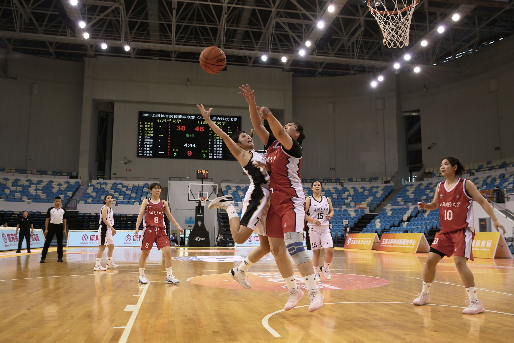 八进四的较量,对手是拥有职业球员的广西民族大学,实力差距显而易见。但山财女篮没有怯场——开局至第三节,她们凭借灵活的战术与顽强的防守,始终保持领先。可第四节风云突变:两名主力队员因累计五犯被迫离场,对手趁机发起猛攻,最后两分钟反超比分,赛场气氛瞬间凝固。