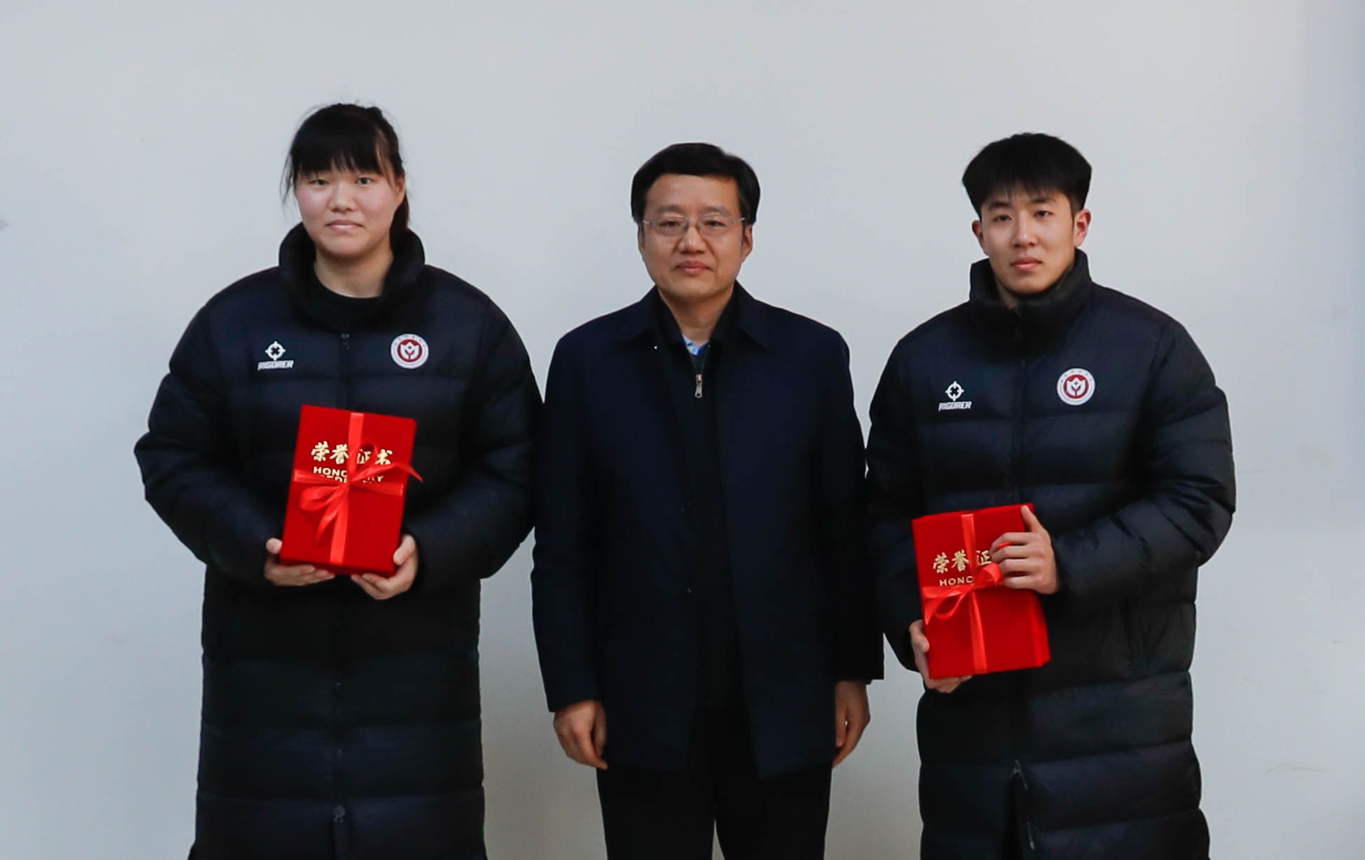 张卫国为男篮女篮优秀成员颁发“先进个人”荣誉证书