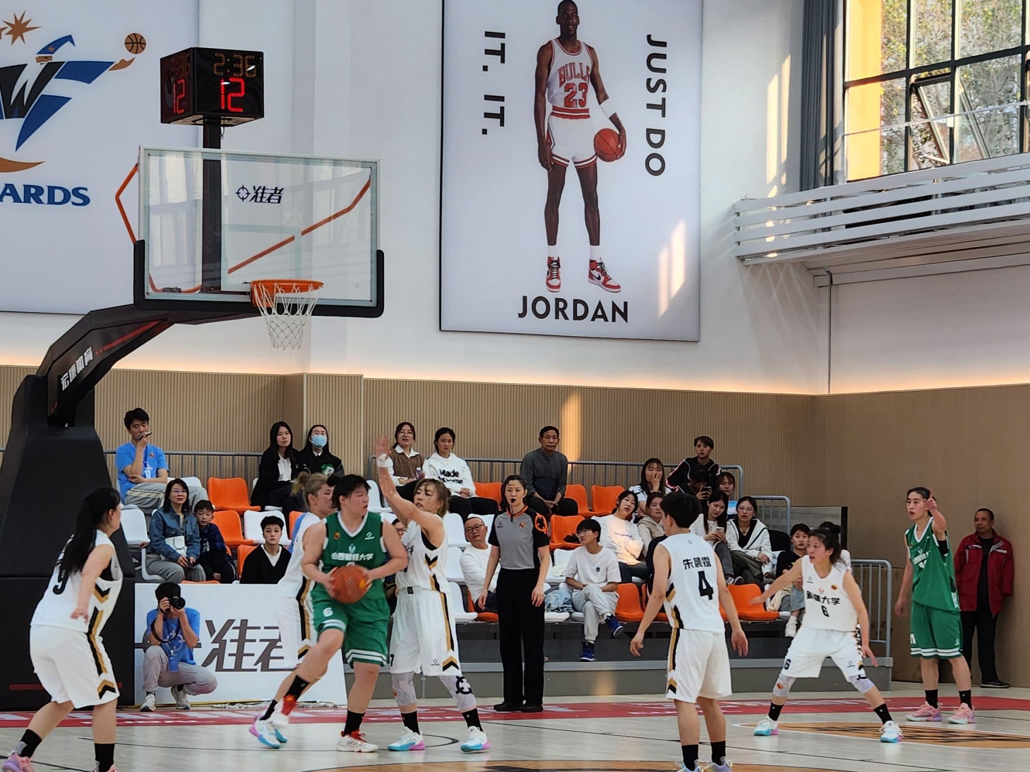 下午16:00,财大女篮对阵新疆大学。开局我方队员进入状态稍慢,第一节结束时落后8分;第二节,队员们手感渐佳,抢断、助攻、篮板干脆利落,打出了27:5的小高潮;第三、四节的比赛节奏总体在我方控制内,财大队员们将比分优势保持到最后,最终以65:44取得小组赛二连胜。我方球员的比赛数据方面,6号卢诗怡、7号潘宏雯分别贡献了21分和15分,11号谭立菁贡献了16个篮板,7号潘宏雯贡献了7次抢断,为比赛胜利打下了坚实基础。