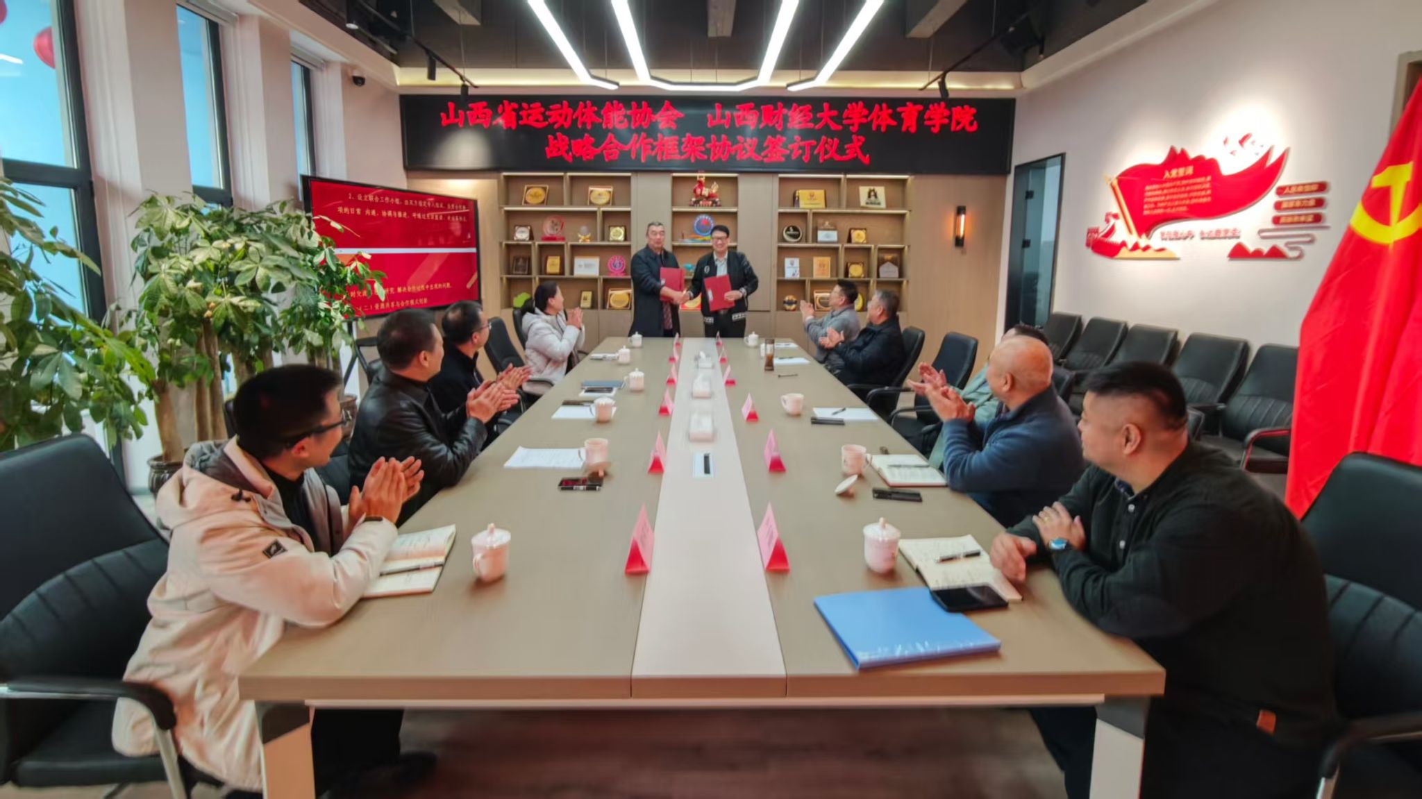 2月28日下午,beats365与山西省运动体能协会战略合作框架协议签署仪式在山西省运动体能协会会议室举行。公司党委书记李群生、经理张路、副经理高进、体育经济与管理教研室和运动训练教研室有关负责人,山西省运动体能协会主席沈广晋,副主席段林贵、夏登勤等出席签约仪式。