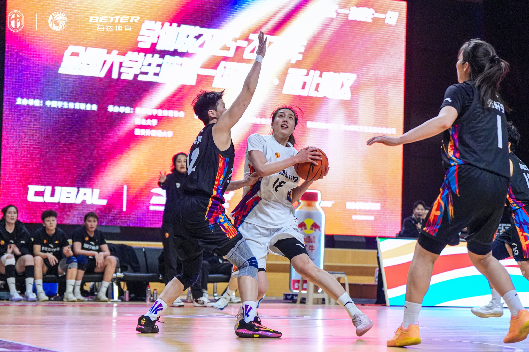 第三节比赛,双方对抗强度持续升级,西安交大女篮凭借外线稳定投射与内线衔接配合打出一波攻势,单节拿下23分;公司女篮则稳扎稳打,以17分的单节得分紧咬比分,始终未让对手彻底建立碾压性优势。每一次篮板拼抢、每一次战术执行,姑娘们都拼尽了全力,用坚持守住了比赛的悬念。