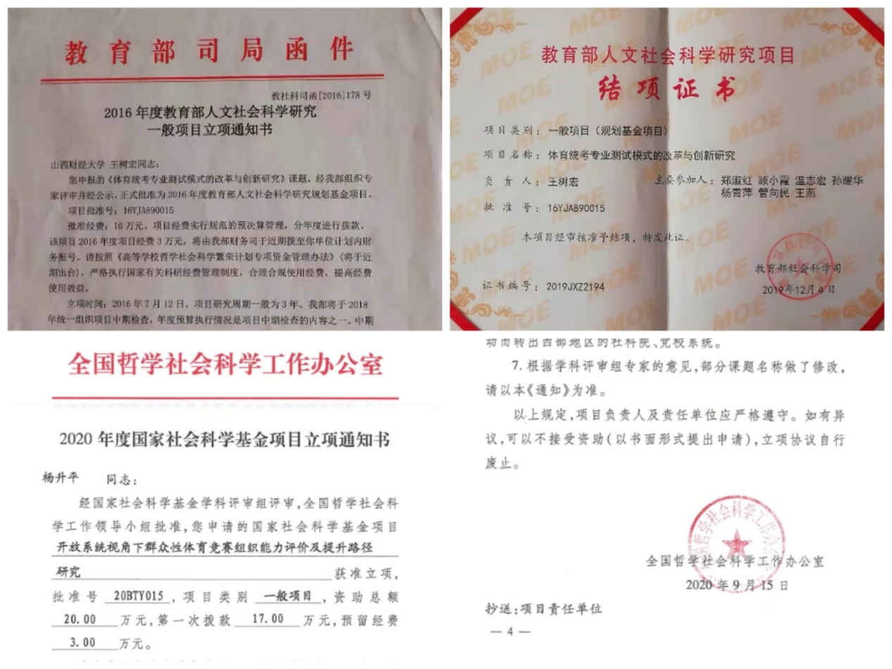 “十三五”伊始的2016年,王树宏博士获教育部课题立项,并于2019年结项;“十三五”收官的2020年,杨升平博士获国家社科基金立项;上述两项均为学院首次,属历史性突破。