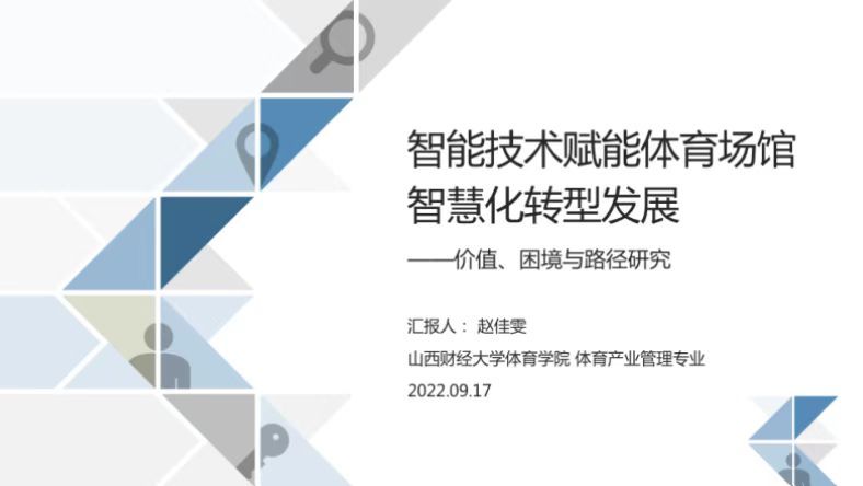 李杨帆入选论文题为《公共体育场馆PPP项目运营绩效评价研究—基于熵权TOPSIS模型》,研究以利益相关者理论为视角切入,以公共体育场馆全生命周期为时间纬度,探寻公共体育场馆PPP项目运营绩效评价的理论逻辑,审查公共体育场馆运营绩效评价现状,在选择影响绩效目标的重要因素的基础上,建立公共体育场馆 PPP 项目运营绩效指标体系。赵佳雯入选论文题为《智能技术赋能体育场馆智慧化转型发展——价值、困境与路径研究》,文章探讨了在大数据、物联网、区块链等技术的广泛应用和城市智能化进程不断加快的驱动下,我国体育场馆智慧化转型升级的时代背景、转型要素以及优化路径,文章提出场馆智慧化转型需要把握技术、服务、运营管理和实践四大要素,以技术应用为基础,坚持以用户为中心的基本原则,进行智慧化运营管理和差异化转型升级,促进场馆运营价值的提升。