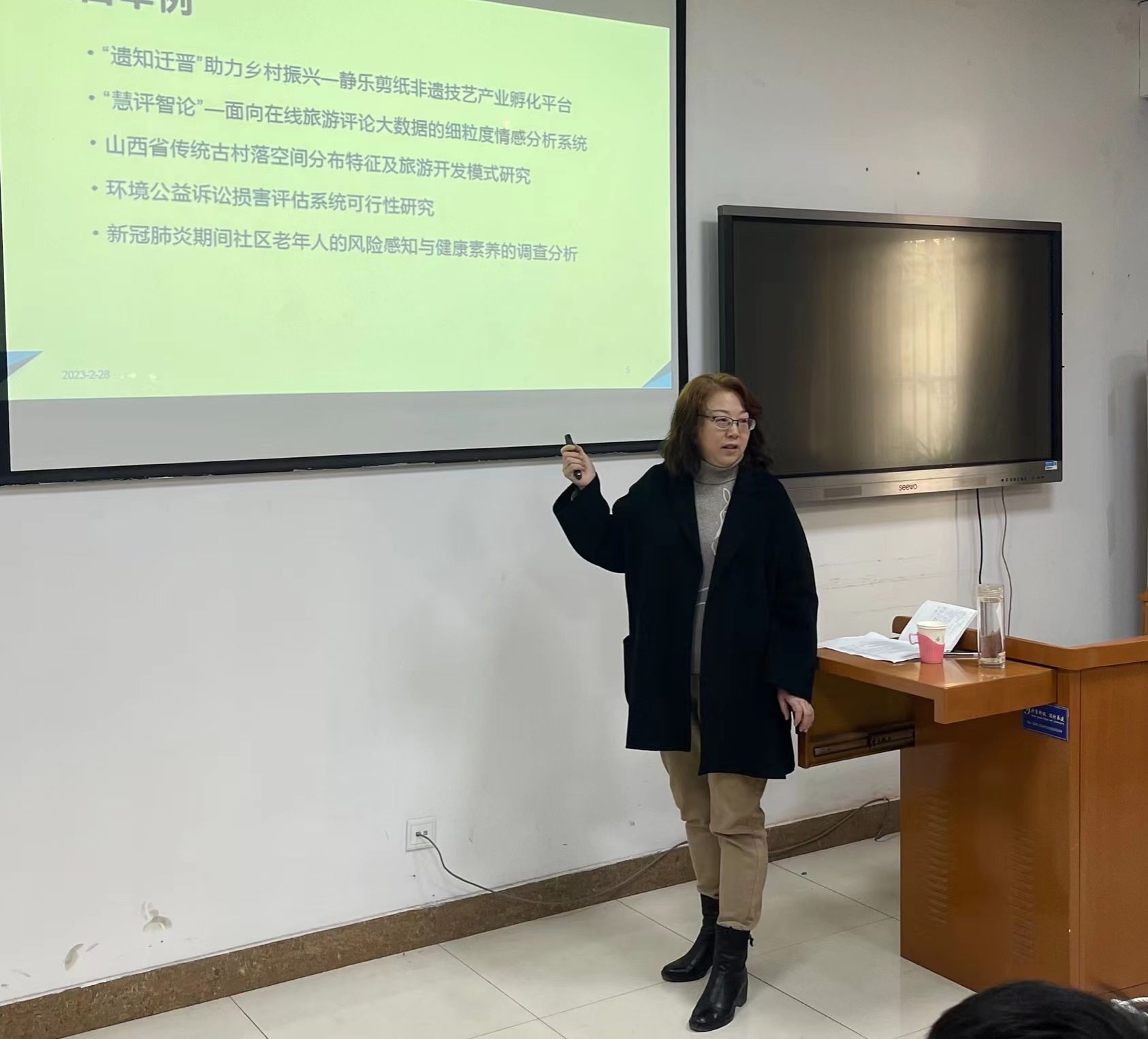 王树宏教授从国家战略、高校发展、专业建设以及人才培养等方面,阐述了大创项目的重要意义,并用公司及公司历年“双创”取得的好成绩鼓励参加辅导的同学们。王树宏教授结合专业及她指导员工“双创”的经验,重点对选题及申报书的撰写为同学们进行了耐心的讲解。她通过剖析优秀大创申报书案例,向大家分享了大创项目申报书撰写的思考逻辑、文字表达以及写作的重点、难点。