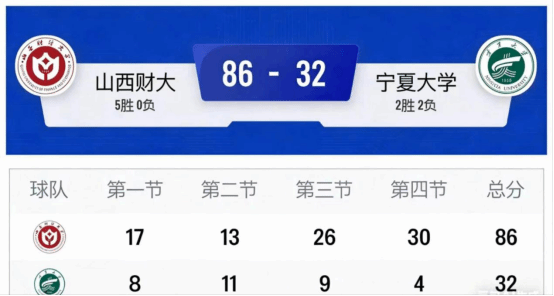 末节决战,山西财大女篮丝毫没有松懈,反而愈战愈勇。防守端更是祭出铁血防守,将宁夏大学的单节得分压制到仅 4 分,创造了极致的防守表现;进攻端则火力全开,单节轰下 30 分,用一波进攻狂潮将比分最终锁定为 86-32,以 54 分的巨大优势圆满收官。